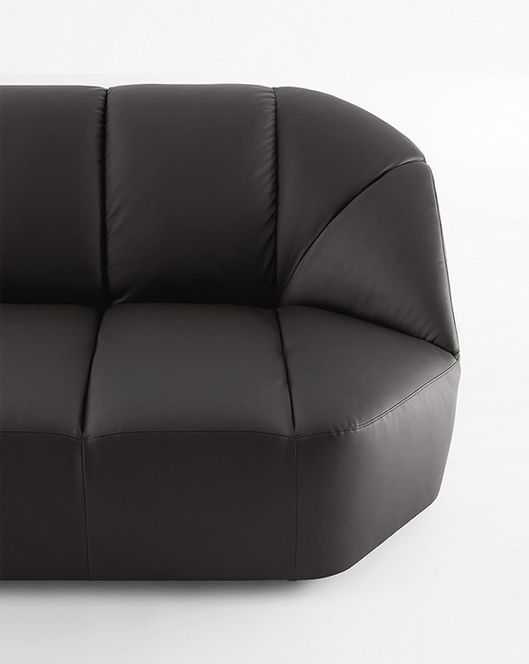 Sofa in non-deformable polyurethane foam with differentiated densities and polyester fiber with internal wooden structure. Feet in black lacquered wood. Available with fabric or leather upholstery in the colors of the samples. Not removable. To create elements with leather covering, additional stitching is required compared to elements with fabric covering.