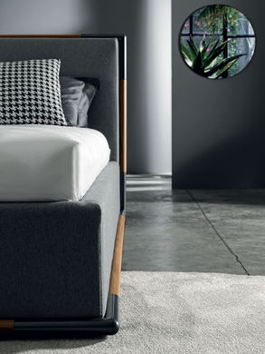 Metal and wood dictate the beauty and charm of San Marco in their chromatic and material interplay. Headboard and body are isolated by a thin cylindrical element – fanciful decoration in solid wood and metal that enriches the ultra-basic profile of the bed. San Marco is also available with the practical container box. The treat of its High version? The decorating profile becoming a delightful bergere, intriguing and similar to that of Piazzaduomo bed.
